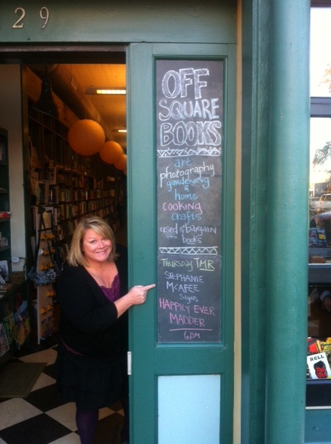 The best part came when seven o’clock rolled around and I got to do one of my most favorite things in the whole wide world -meet and greet folks and sign some books! So you see, I wasn’t kidding. It was awesome! Cue to music! Now I’ve….. had….. the time of my life….. and I owe it all to Off-Square Books, Thacker Mountain Radio, and all the people who read my crazy books and make stuff like this possible. So what I need to do right now is say Thanks! THANK YOU! and Muchas Gracias!